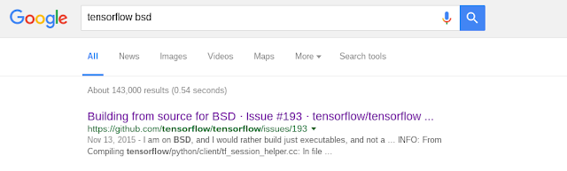 | The beginning of the 3 day journey. (The only issue on TensorFlow related to BSD, and of course it wasn't useful.) |